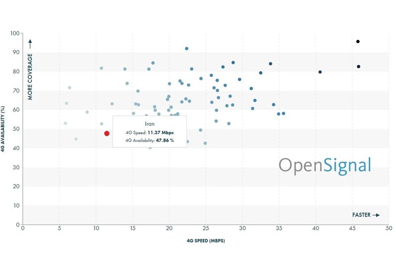 نمودارهای زیر وضعیت پوشش و سرعت اینترنت نسل چهارم را در کشورهای دنیا نشان می‌دهد و نگاهی به آن می‌تواند نشان دهد که از منظر شاخص‌ها در چه مرحله‌ای از رقابت با بازیگران جهانی در این زمینه قرار داریم.