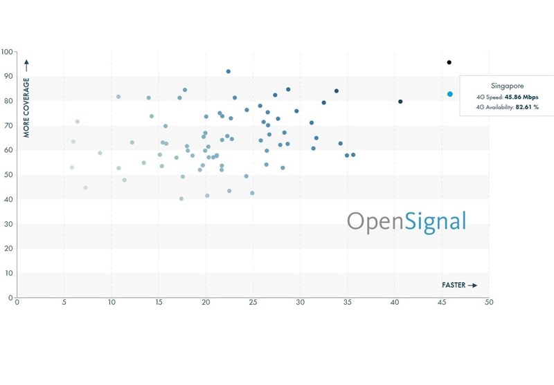 کره جنوبی شاخص میزان پوشش آنتن‌های 4G با کسب 95.7 درصد میزان ضریب نفوذ در مقام اول رده‌بندی این سایت قرار گرفته و سنگاپور هم با در اختیار داشتن کیفی‌ترین (سریع‌ترین) شبکه LTE که میانگین سرعتی پیرامون 45.86Mbps دارد در جایگاه بعدی قرار گرفته است.