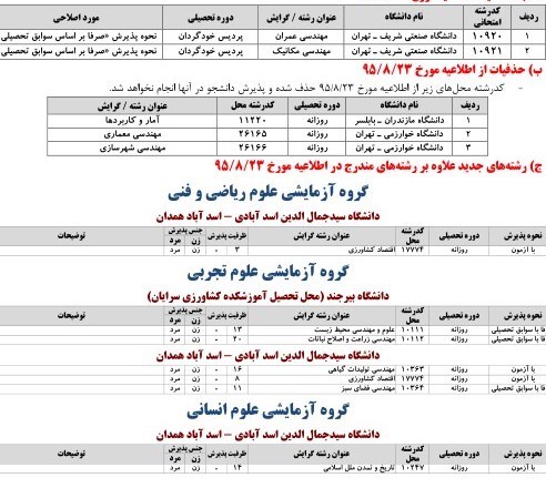 بخشی از اصلاحات اخیر تکمیل ظرفیت آزمون سراسری سال 95 بدین شرح است.