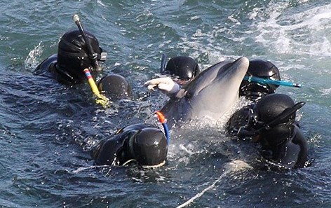 آموزش دهندگان و پرورش دهندگان دلفین، به تدریج دوشادوش صیادان تایجی، عازم صید دلفینها شدند تا در معایناتی چند ساعته، دلفینهای جوانتر و زیباتر را پیش از سلاخی شدن توسط نیزه صیادان، خریداری کرده و با هواپیماهایی مجهز راهی فضاهایی کوچک و محصور تحت عنوان دلفیناریوم کنند. در حالی که هزینه خرید هر دلفین آموزش دیده، بین سیصد هزار تا پانصد هزار دلار متغیر است و هزینه هر دلفین آموزش ندیده در حدود نصف آن، قیمت گوشت هر دلفین تنها پانصد دلار است.