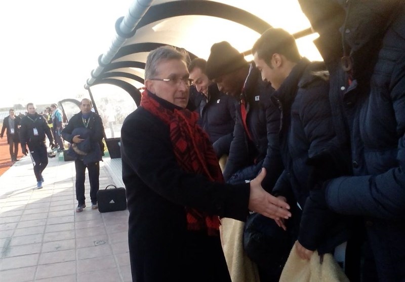 * برانکو و دستیارانش قبل از آغاز بازی با دیدن زمین مسابقه از کیفیت آن ابراز رضایت کردند.
