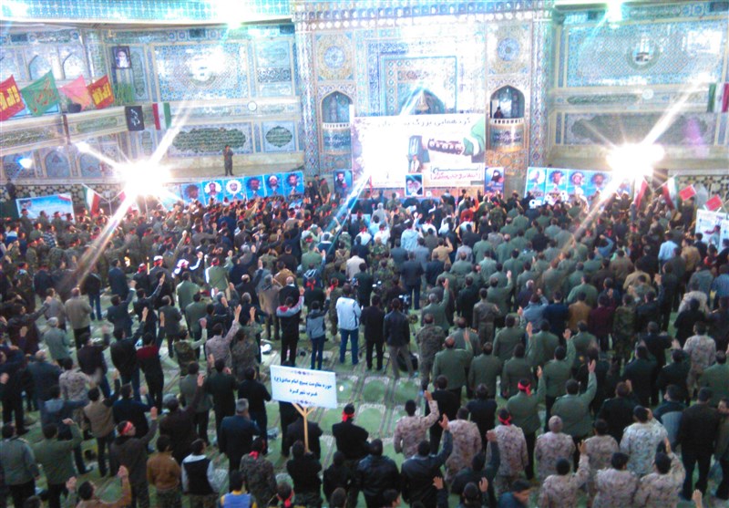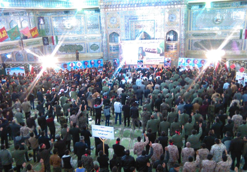 امروز بسیجیان گرد هم آمدند تا آمادگی خود را برای جامعه عمل پوشاندن منویات مقام معظم رهبری اعلام کنند و لرزه بر جان یزیدیان امروز بیندازند.