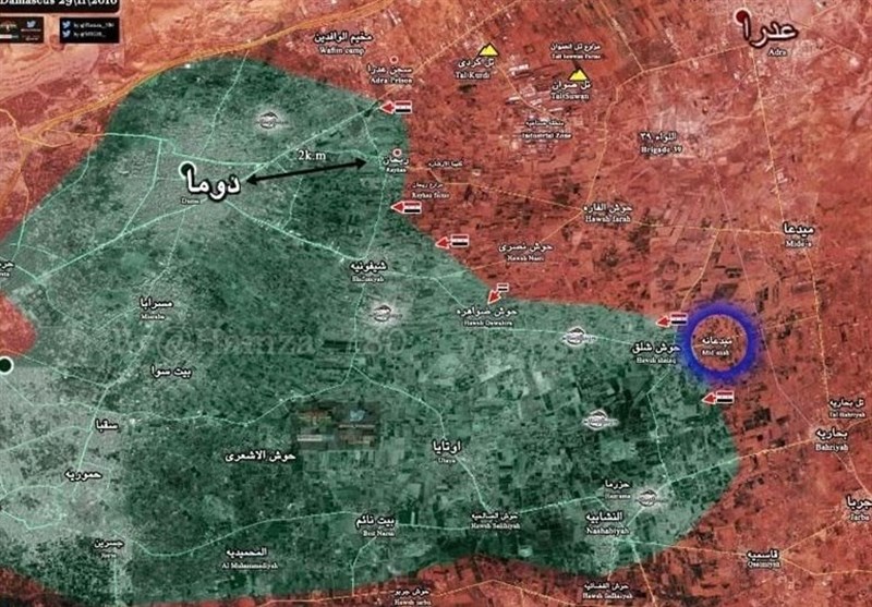 آزادی«المیدعانی» در حومه دمشق/ارتش سوریه به 10 کیلومتری قلعه «جیش‌الاسلام» رسید+تصاویر و نقشه