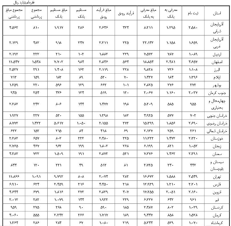 جزئیات تسهیلات پرداختی به واحدهای تولیدی به شرح زیر است: