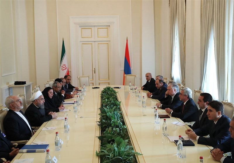 "سرژ سرکیسیان" رییس جمهوری ارمنستان نیز در این نشست با اشاره به اینکه امروز شرایط مناسب و خوبی برای توسعه همه جانبه مناسبات تهران-ایروان فراهم است، گفت: هیچ مانعی در مسیر ارتقا سطح روابط و همکاری های دو کشور وجود ندارد و مصمم هستیم مناسبات تجاری، اقتصادی و فرهنگی موجود را بیش از پیش فعال کنیم.
