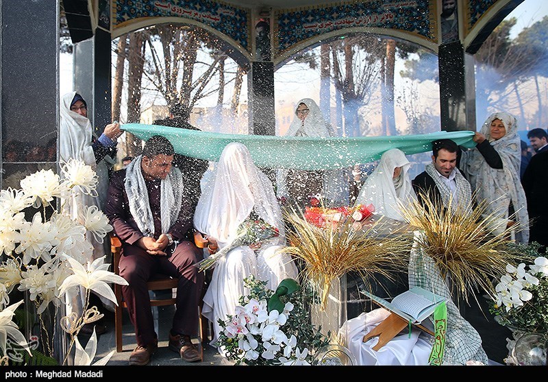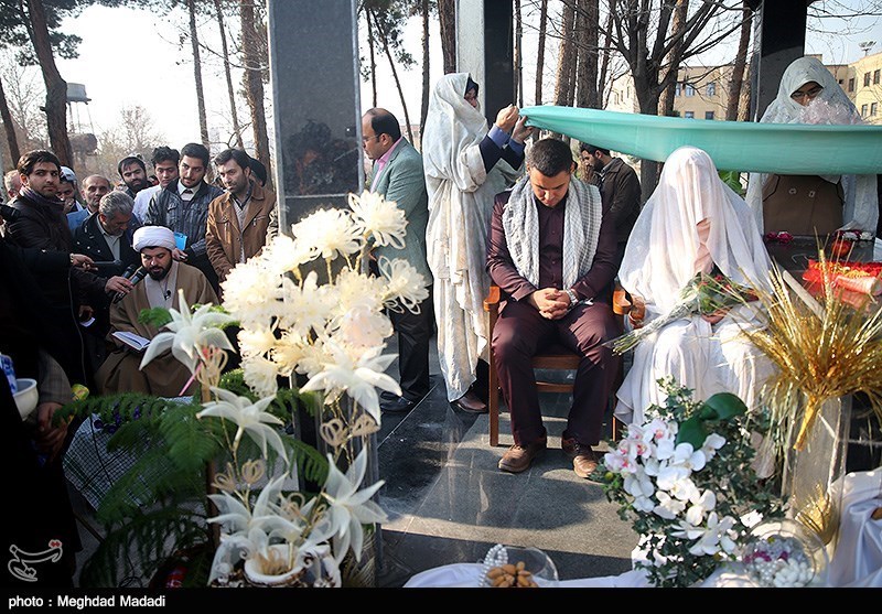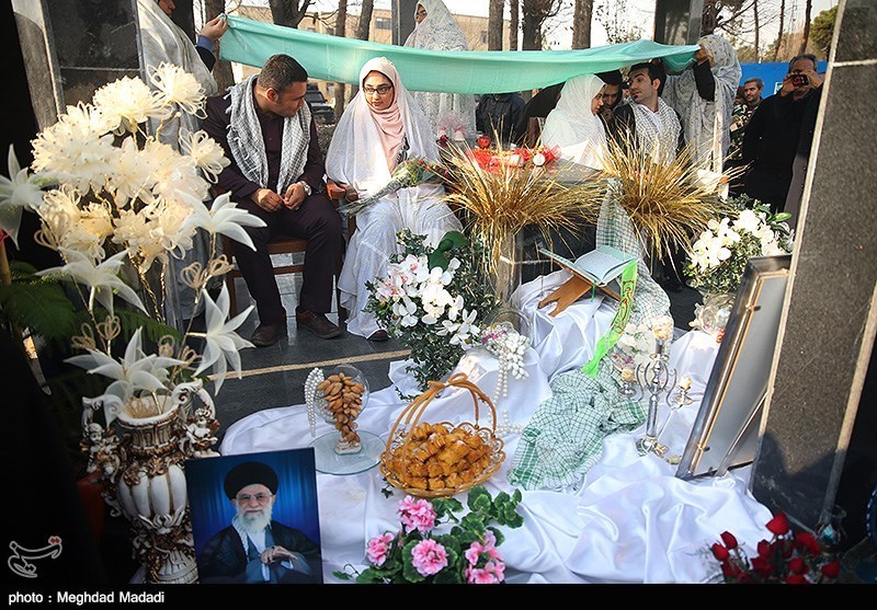 به گزارش خبرنگار فرهنگی باشگاه خبرنگاران تسنیم«پویا», بسیاری از زوج های جوان ایام میلاد پیامبر اکرم(ص) و امام جعفر صادق(ع) را برای ازدواج و آغاز زندگی مشترک خود انتخاب میکنند تا زندگی مشترک خود را به نور اهل بیت مزین کنند. در این میان زوج های جوان دیگری نیز هستند که در این ایام, زندگی مشترک خود را در جوار شهدای گمنام آغاز میکنند تا علاوه بر مزین شدن زندگی خود به نور اهل بیت با شهدا پیمان بسته و به بیانات مقام معظم رهبری مبنی بر«ازدواج آسان» جامه عمل بپوشانند .در همین راستا مراسم عقد و آغاز زندگی مشترک دو زوج جوان امروز(چهارشنبه) با حضور سردار ذوالقدر جانشین فرمانده سپاه تهران بزرگ و خانواده شهدا در جوار شهید گمنامی که سال 62 در عملیات خیبر به شهادت رسیده و در تیپ حضرت زهرا(س) تهران آرام گرفته برگزار شد.