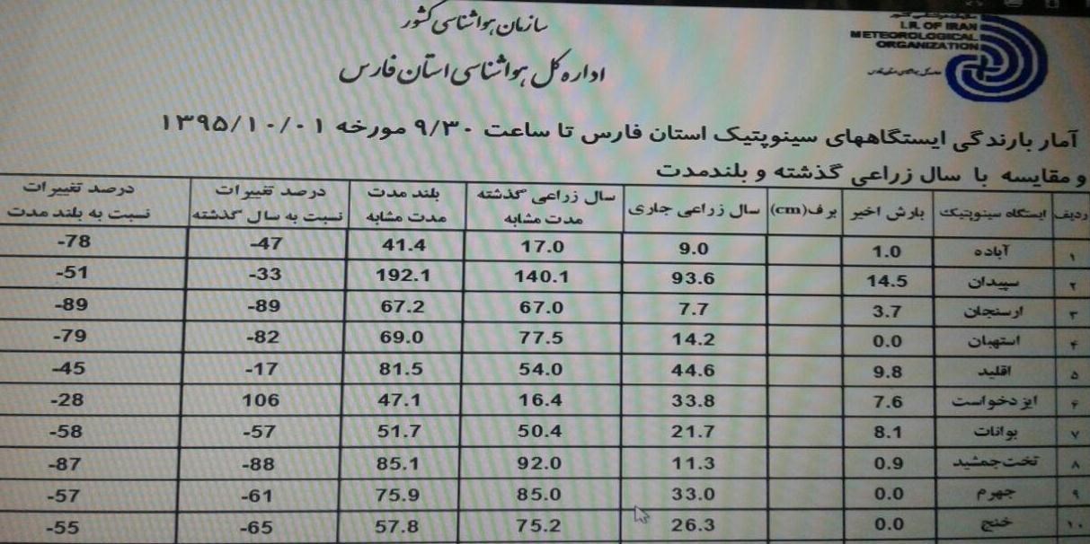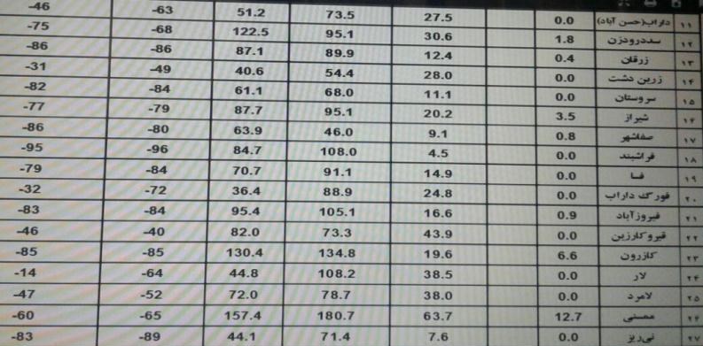 براساس این گزارش، آخرین جزییات بارش باران در نقاط مختلف استان فارس و آمار مقایسهای آن به شرح زیر است: