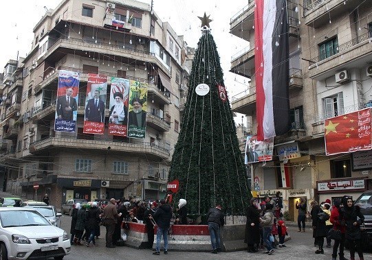 نصب تصاویری از رهبران جبهه مقاومت در محله عزیزیه حلب _ سوریه