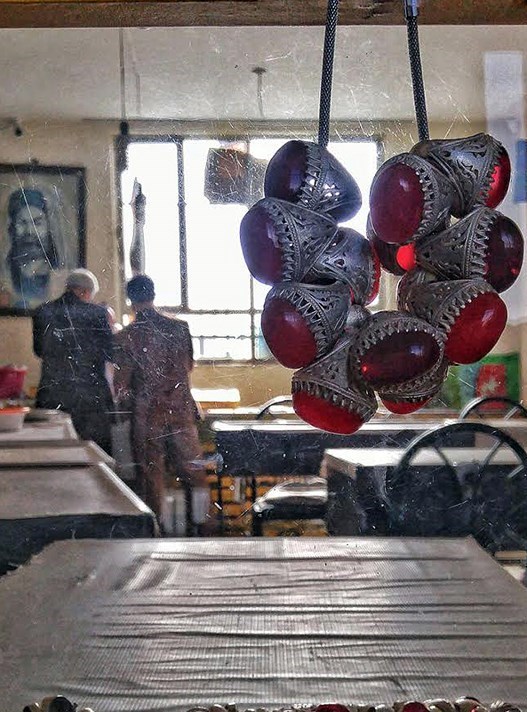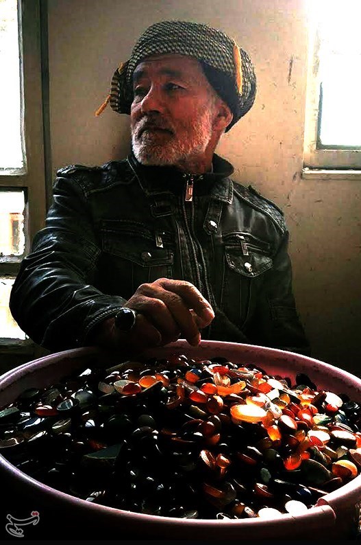 گوشهای پرت مینشینم و یک چای سبز سفارش میدهم تا بیشتر فضا را برانداز کنم، ترتیب میزهای چوبی گرداگرد فضا و دستان زمخت و زحمتکش مردانی که فیروزه و عقیق و یشم و لاجورد در دستانشان با مهارت میچرخد، گاه برای شناسایی اصل بودنش و گاه برای سوار کردن بر پایههای نقره ای انگشترها.