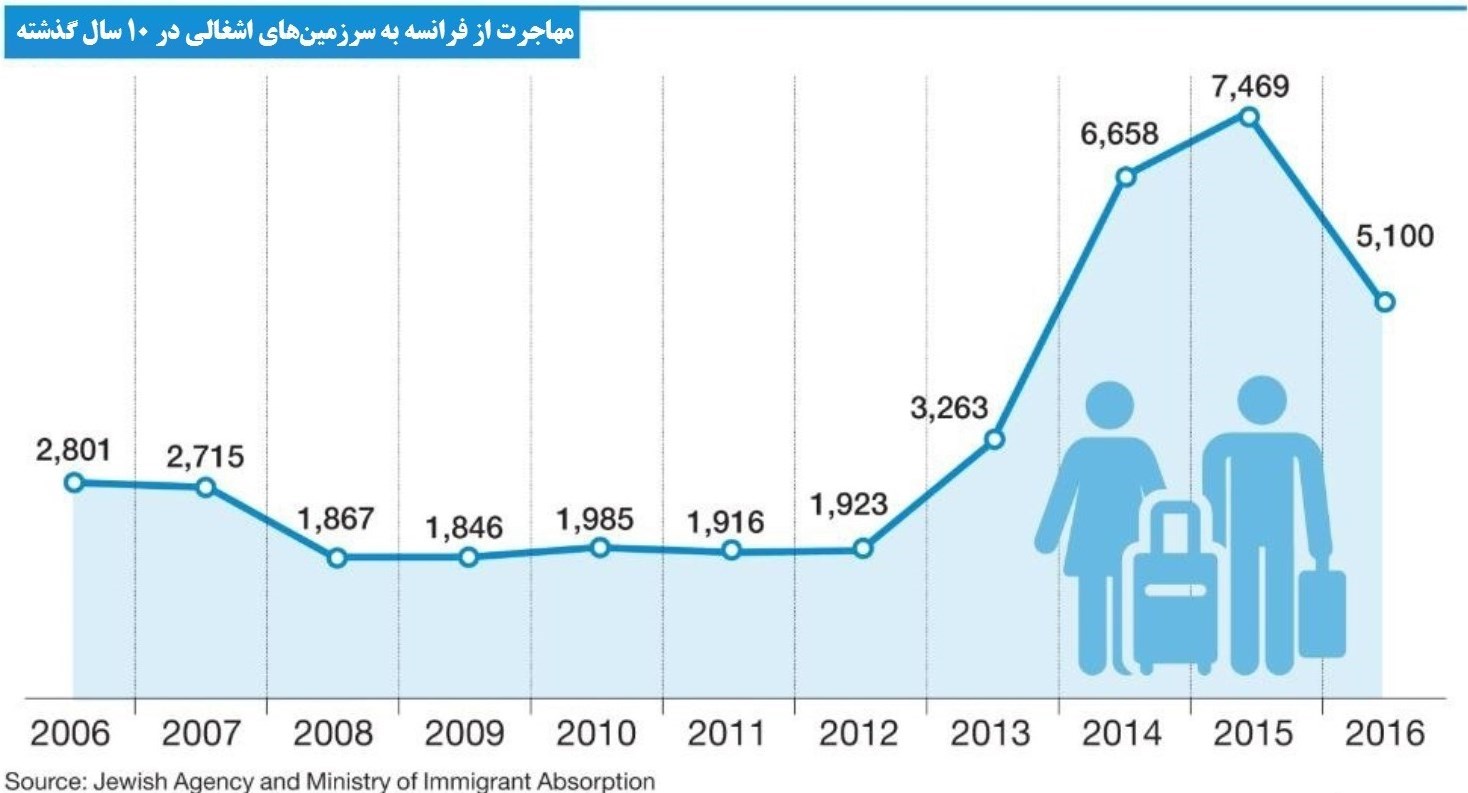 آژانس یهودی اعلام کرده است که بیش از 5 هزار یهودی فرانسوی در سال 2016 به اسرائیل مهاجرت کردهاند که شاهد کاهشی 30 درصدی نسبت به سال 2015 است. در آن سال 7 هزار و 469 یهودی تحت تأثیر حملات تروریستی تکفیریهای صهیونیست در فرانسه و تبلیغات رسانهای صهیونیستها به سرزمینهای اشغالی مهاجرت کرده بودند.