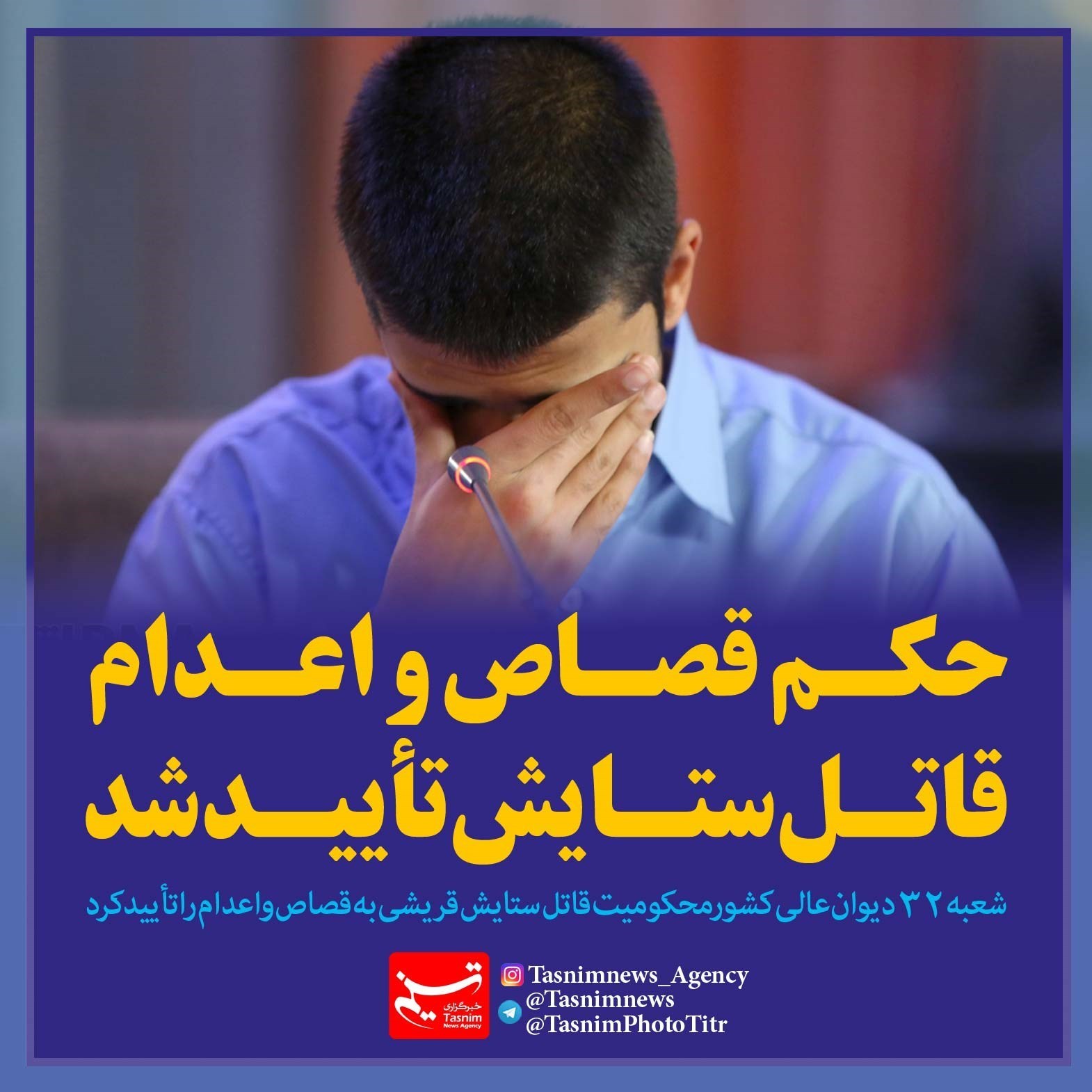 شعبه 32 دیوان عالی کشور محکومیت قاتل ستایش قریشی به قصاص و اعدام را تأیید کرد.