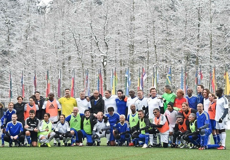 چند ساعت پیش از این مراسم جمعی از اسطورههای فوتبال جهان از جمله دیهگو مارادونا، کارلس پویول، سالگادو، فانباستن، دیوید ترزگه، دوایت یورک و همچنین جیانی اینفانتینیو، رئیس فیفا در دیداری دوستانه و غیررسمی با هم بازی کردند و لحظات جالبی را رقم زدند.