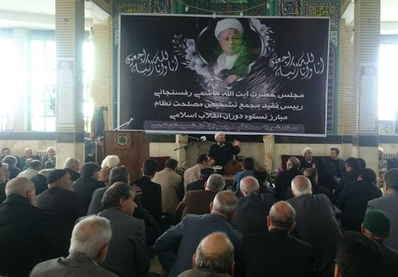 به گزارش خبرگزاری تسنیم از شهرقدس، حجتالاسلام اسلامی علیاکبر حمیدزاده گیوی استاد حوزه و دانشگاه در مراسم گرامیداشت ارتحال آیتالله هاشمی رفسنجانی که ظهر امروز با حضور آحاد مختلف مردم و مسئولان در مسجد جامع شهرستان قدس برگزار شد، به تشریح شخصیت بارز و ابعاد شخصیتی آیتالله هاشمی از زمان پیش از انقلاب تا بعد از انقلاب پرداخت.
