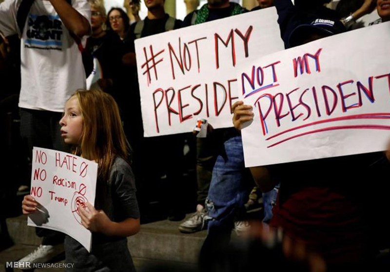 به گزارش گروه بین الملل خبرگزاری تسنیم، تعدادی از معترضان به روی کار آمدن دونالد ترامپ، به عنوان رئیسجمهوری جدید آمریکا در آستانه مراسم تحلیف وی در واشنگتن دست به تظاهرات زدند. شرکت کنندگان در این تظاهرات در اعتراض به ترامپ شعار میدادند: «آمریکای فاشیست نمیخواهیم.»