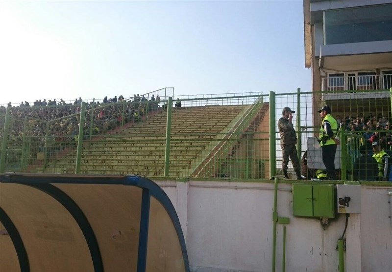 * ماموران یگان ویژه در اعتراض به مسئولان ورزشگاه به آنها اعلام کردند چرا اجازه نمی‌دهند هواداران آبادانی که بیرون ورزشگاه حضور دارند در جایگاه تیم میهمان مستقر شوند.  ماموران حراست ورزشگاه نیز به ماموران انتظامی متذکر شدند که طبق قانون مجبورند جایگاه تیم میهمان را حتی اگر تماشاگر هم ندارند خالی بگذارند.  پس از این اختلاف نظر ماموران یگان ویژه به مسئولان ورزشگاه اعلام کردند اگر بیرون ورزشگاه اتفاقی برای تماشاگران رخ دهد آنها نیز مسئول هستند.