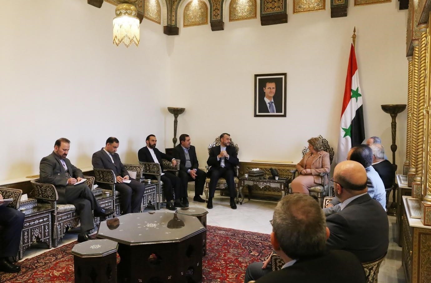 به گزارش خبرنگار خبرگزاری تسنیم در دمشق، «حسین امیرعبداللهیان» دستیار ویژه رئیس مجلس شورای اسلامی در امور بین الملل امروز با خانم دکتر «هدیه عباس» رئیس پارلمان سوریه دیدار کرد.
