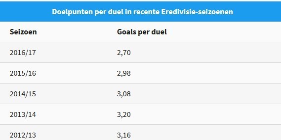 با نگاهی به معدل آماری گلهای هر بازی در فصول اخیر اثبات میشود که اردویژه هلند کسلکننده شده و تعداد گلهای آن کاهش یافته است. برای چهارمین سال متوالی متوسط گلهای به ثمر رسیده در هر بازی رو به کاهش است که این اتفاق تاریخی تا پایان فصل جاری اردویژه هلند قابل مشاهده خواهد بود.