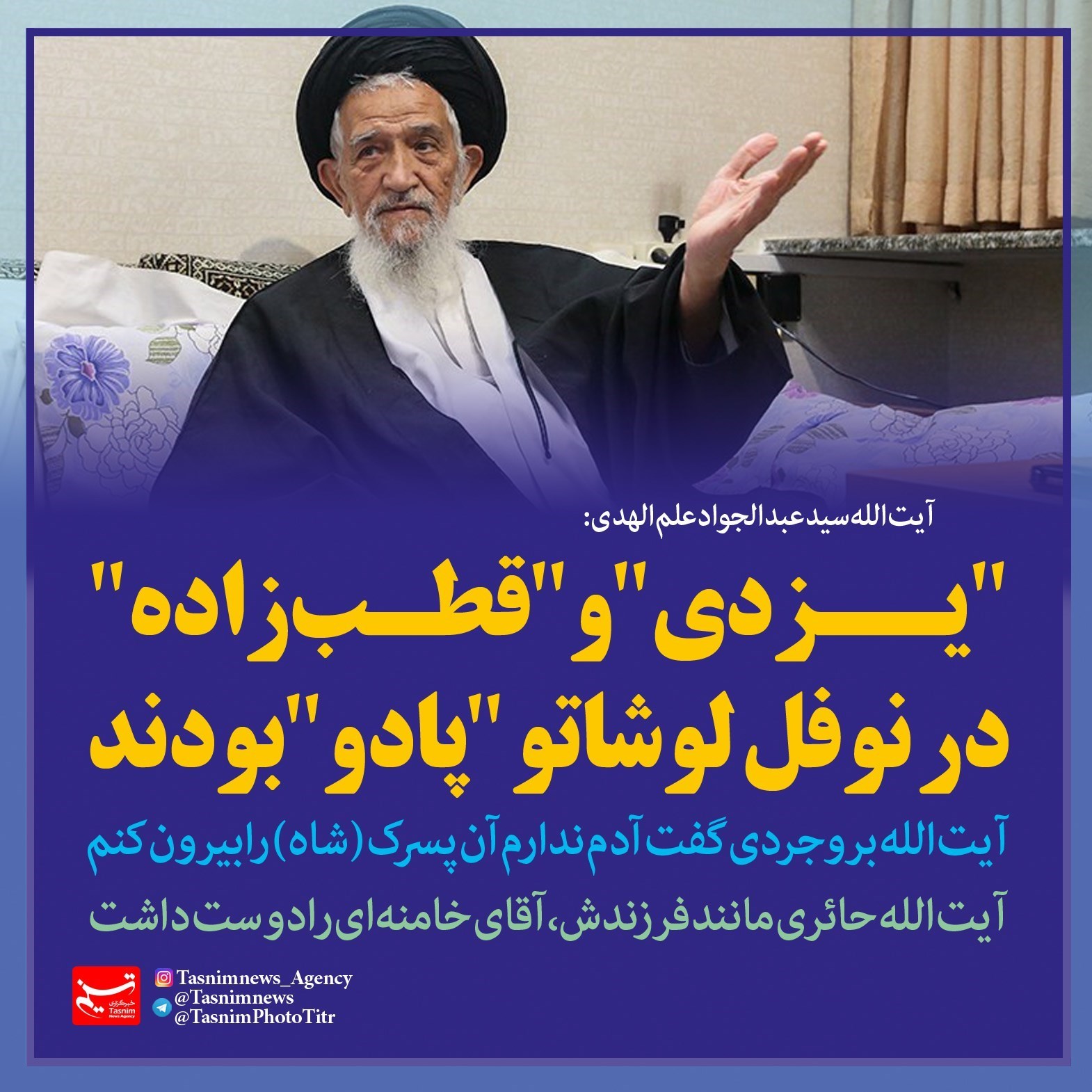 فتوتیتر/علم الهدی:"یزدی" و "قطب‌زاده" در نوفل لوشاتو "پادو" بودند