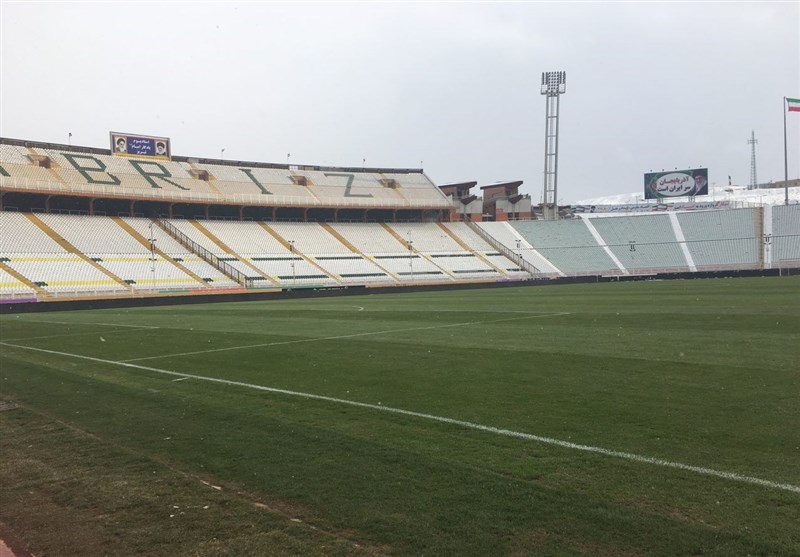 * در اطراف چمن ورزشگاه برفهای نسبتا زیادی به چشم میخورد.
