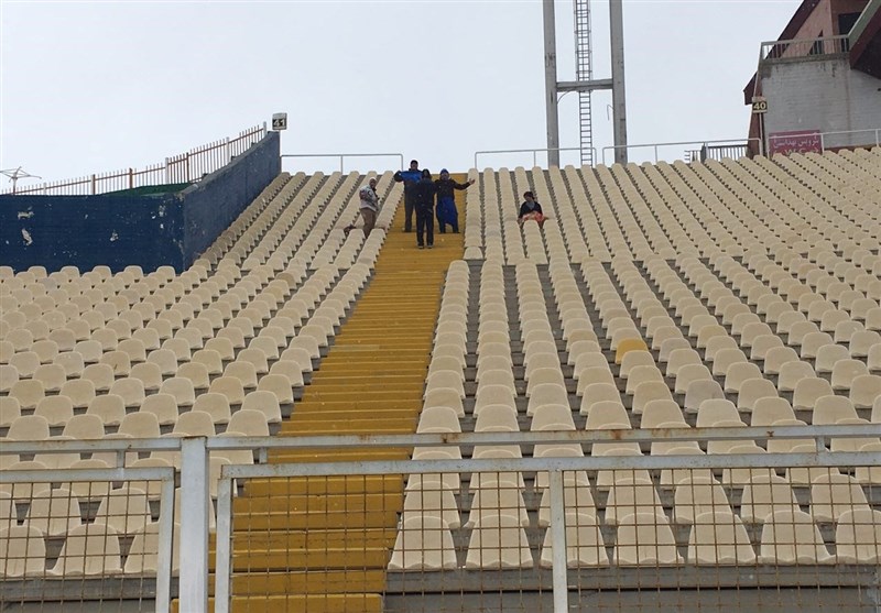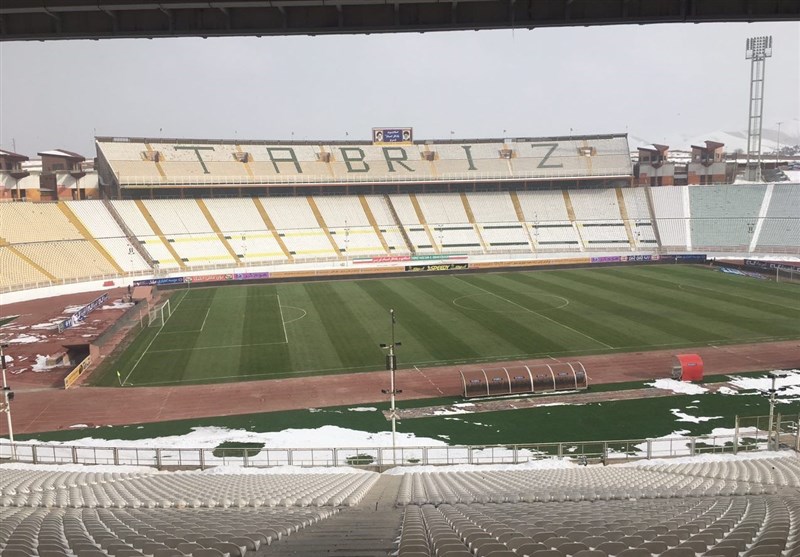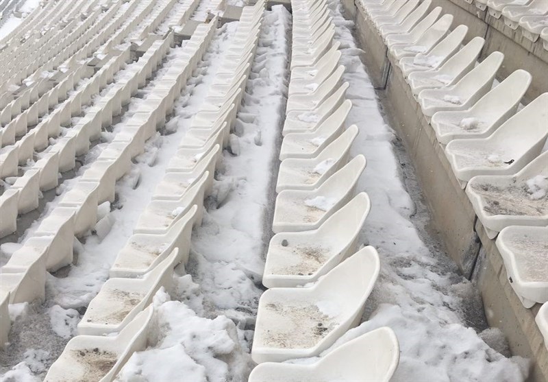 * وضعیت صندلیهای ورزشگاه یادگار تبریز چندان خوب نیست و روی بسیاری از آنها برف نشسته است.