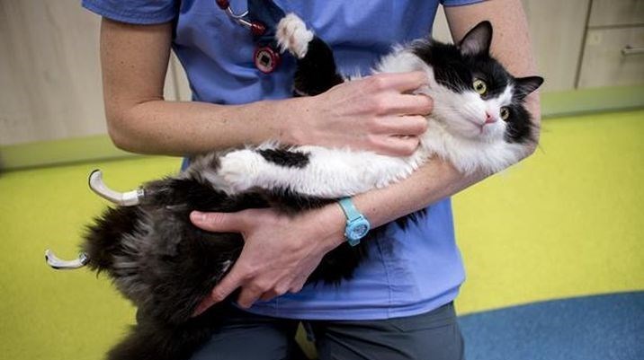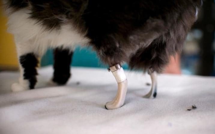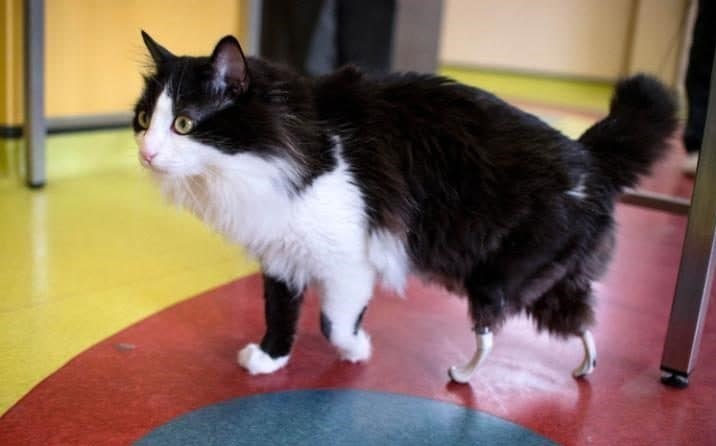 دو پای این گربه به صورت «ایمپلنت» و سفارشی ساخته شده و بسیار شبیه نحوه رشد شاخ گوزن از طریق پوست رشد میکند.