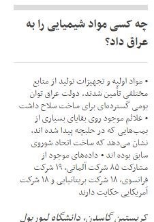 تصویر قمستی از گزارش بیبیسی درباره حلبچه؛ این رسانه اذعان میکند که 18 شرکت بریتانیایی در مسلح کردن صدام به تسلیحات شیمیایی نقش داشتند