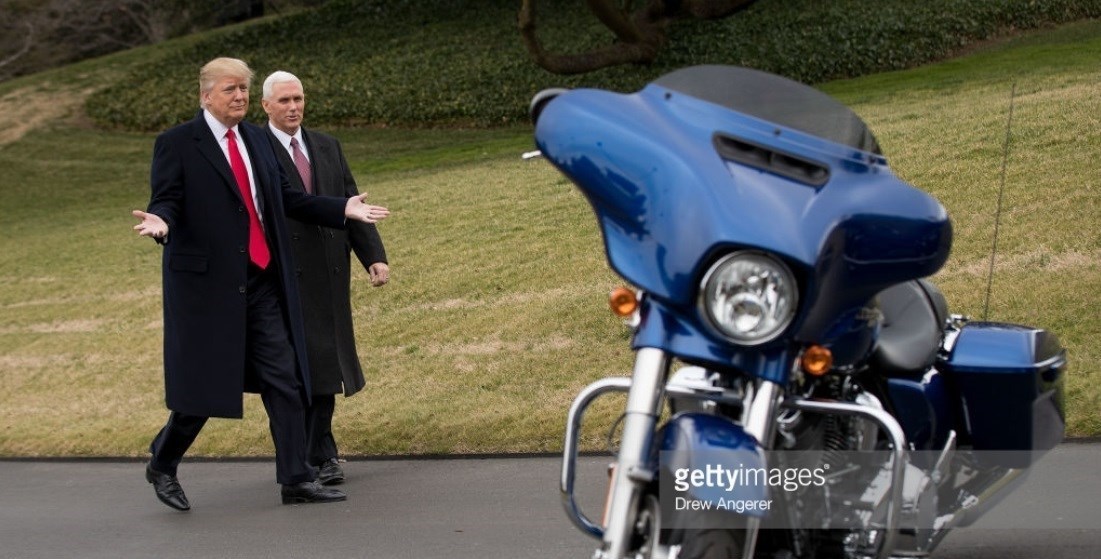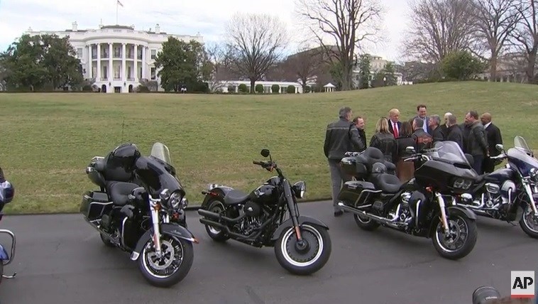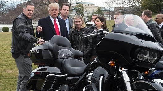 بر اساس گزارش آسوشیتدپرس، «دونالد ترامپ» و «مایک پنس» معاون رئیس جمهور آمریکا روز پنجشنبه، 2 فوریه با مدیران و اتحادیه نمایندگان هارلیدیویدسون در چمن جنوبی کاخ سفید در واشنگتن در حالی دیدار کرد که دقایقی قبل از حضور آنها حیاط کاخ سفید به محل جولان موتورهای «هارلیدیویدسون» تبدیل شده بود.
