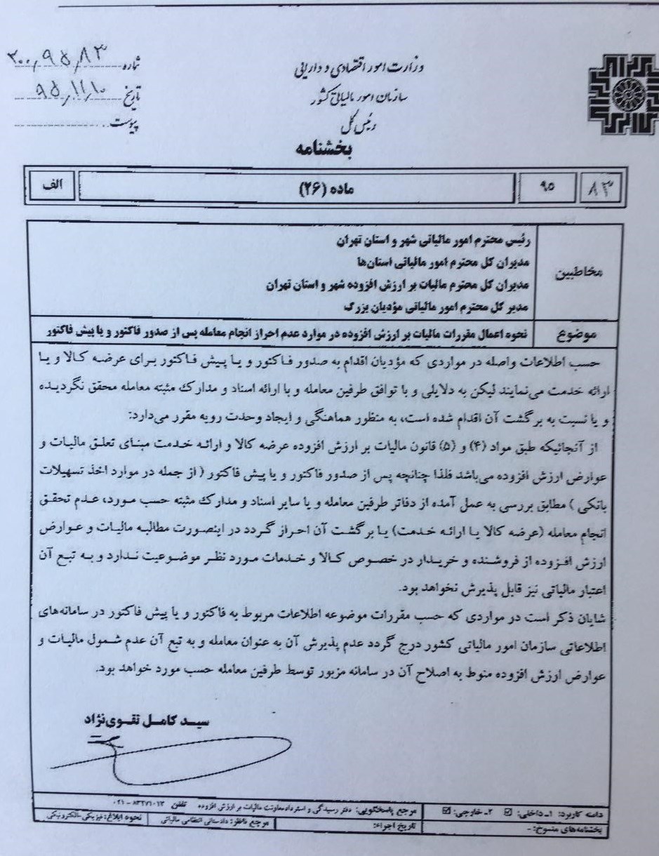همچنین در صورتی که اطلاعات مربوط به این پیش فاکتورها در سامانه مالیاتی ثبت شده باشد، طرفین باید نسبت به اصلاح آن در سامانه اقدام کنند.