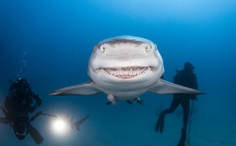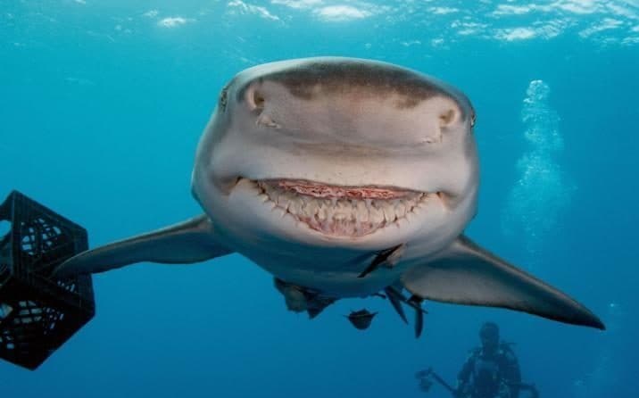 نگاه مستقیم این کوسه به دوربین درحالی که دندانهای کوسه بیرون مانده است یک لبخند زیبا را تداعی میکند.