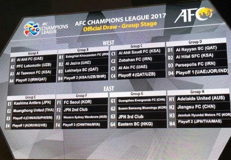 به گزارش خبرنگار ورزشی باشگاه خبرنگاران تسنیم «پویا»، با پایان دیدارهای پلیآف لیگ قهرمانان آسیا و رونمایی از آخرین تیمهای صعود کننده به مرحله نهایی این مسابقات، گروهبندی کامل این بازیها در منطقه غرب آسیا مشخص شد.