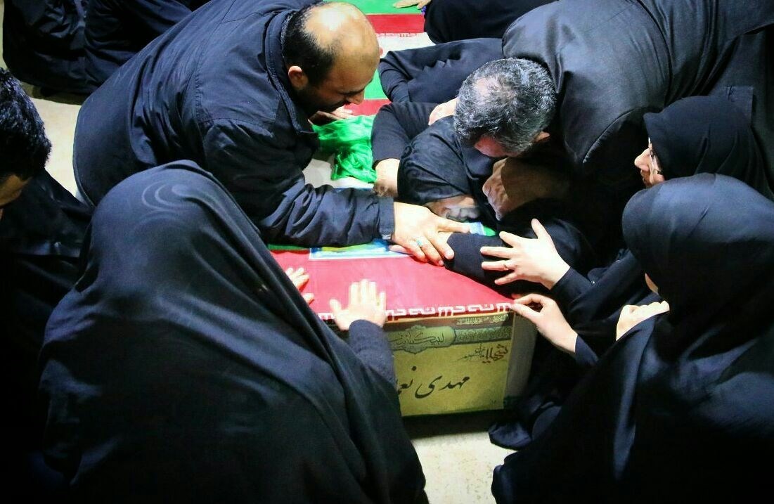 به گزارش خبرنگار فرهنگی باشگاه خبرنگاران «پویا»، مراسم وداع با پیکر مطهر شهید مدافع حرم مهدی نعمایی روز گذشته سهشنبه 27 بهمن ماه 95 با حضور اعضای خانواده این شهید در معراج شهدای مرکز برگزار شد. در این مراسم دختر خردسال شهید نعمایی برای آخرین بار با پیکر مطهر پدرش وداع کرد.