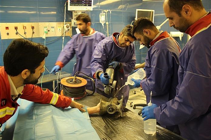 وی ادامه داد: نیروهای آتشنشانی بلافاصله با استفاده از تجهیزات مخصوص، چرخگوشت را در حضور امدادگران اورژانس از میز کار جدا کرده و فرد مصدوم را برای انتقال به مراکز درمانی تحویل عوامل اورژانس دادند همچنین آتشنشانان با حضور در مرکز درمانی امام خمینی (ره)، در حضور کادر پزشکی قسمتی از بدنه چرخگوشت را با بکارگیری ابزار فرز برش داده و دست کارگر جوان که از ناحیه انگشتان دچار آسیب دیدگی شده بود را از داخل چرخ گوشت خارج کردند.