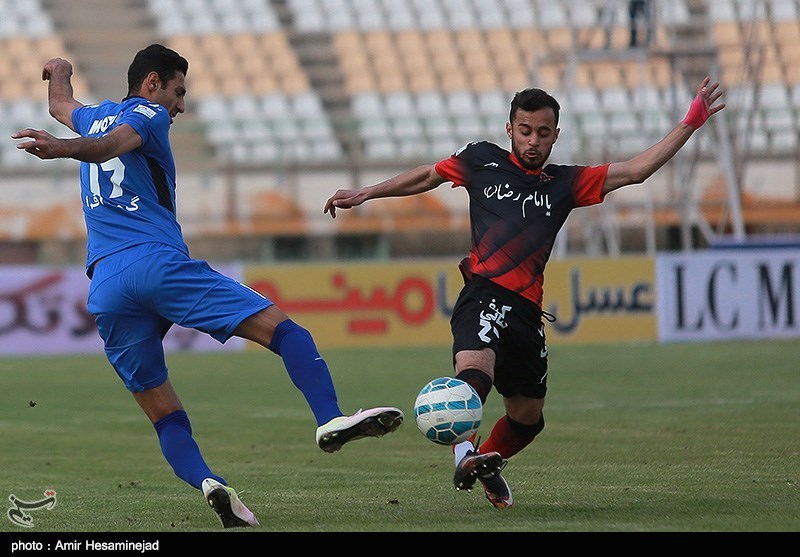 * روزبه چشمی بازیکن صبا و نیز مدیران عامل دو باشگاه در جایگاه ویژه، این مسابقه را تماشا میکنند.