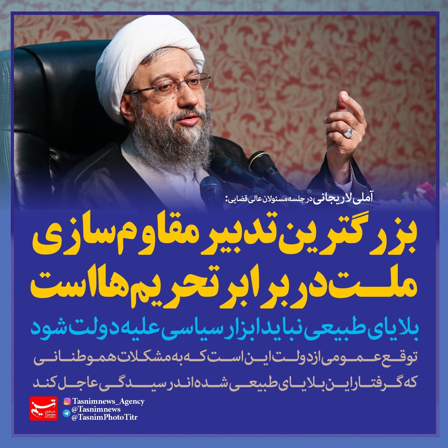 فتوتیتر/آملی لاریجانی:بزرگترین‌تدبیر، مقاوم سازی ملت در برابر تحریم‌ها است