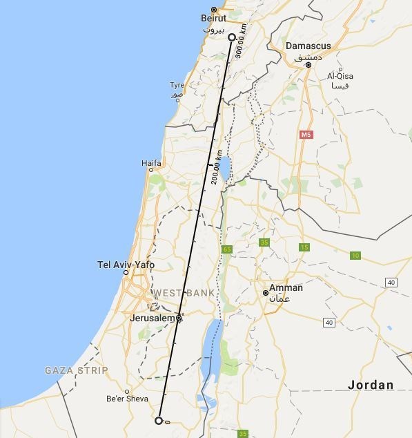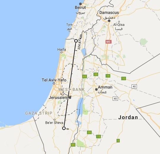 فاصله دیمونا تا مرز لبنان 225 کیلومتر است
