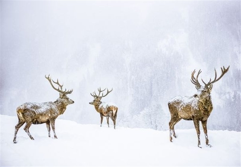 عکاس مجله نشنال جئوگرافیک تصویری از سه گوزن را در هوای به شدت سرد و برفی کوه‌های آلپ اتریش به ثبت رسانده است.