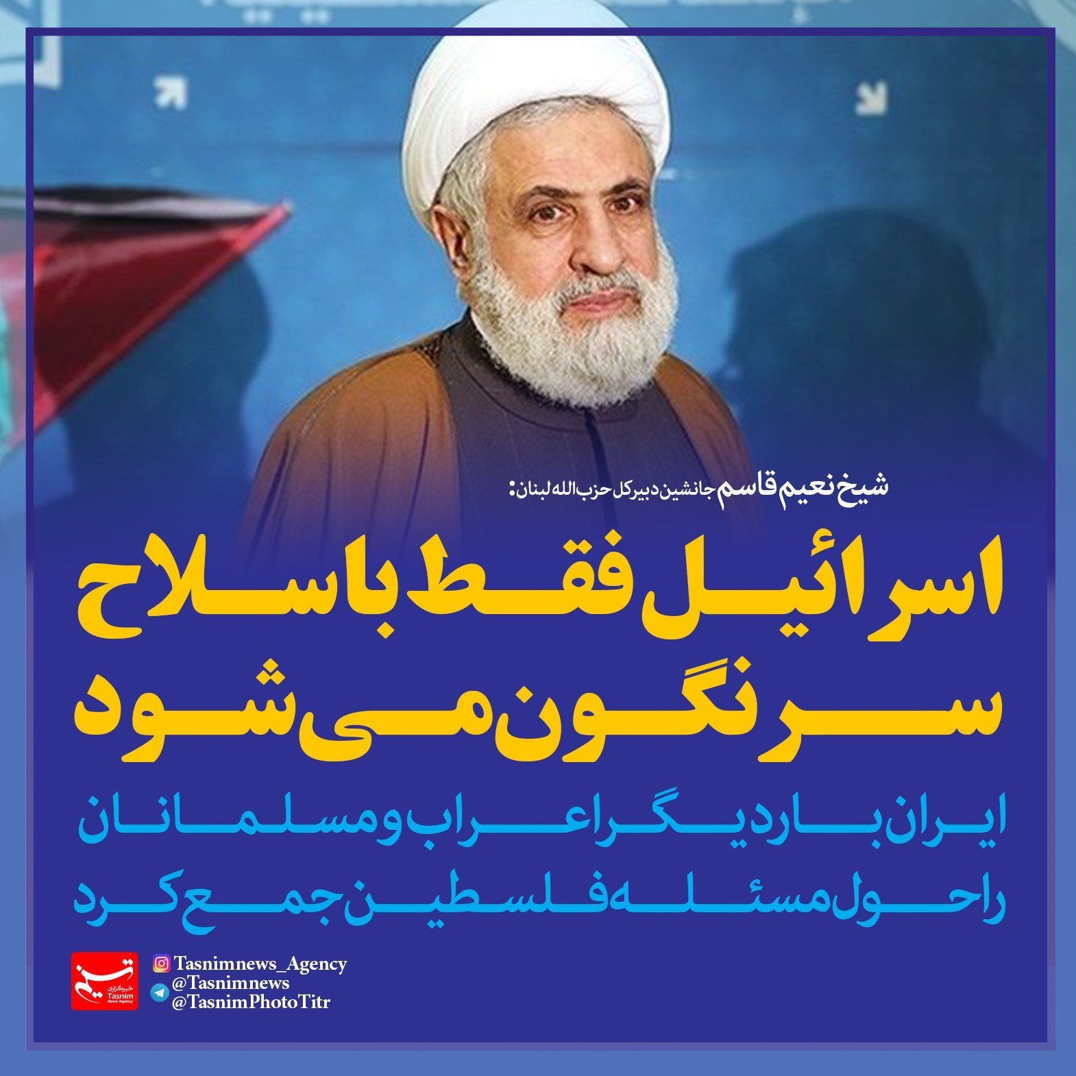 فتوتیتر/شیخ نعیم قاسم: اسرائیل فقط با سلاح سرنگون می‌شود