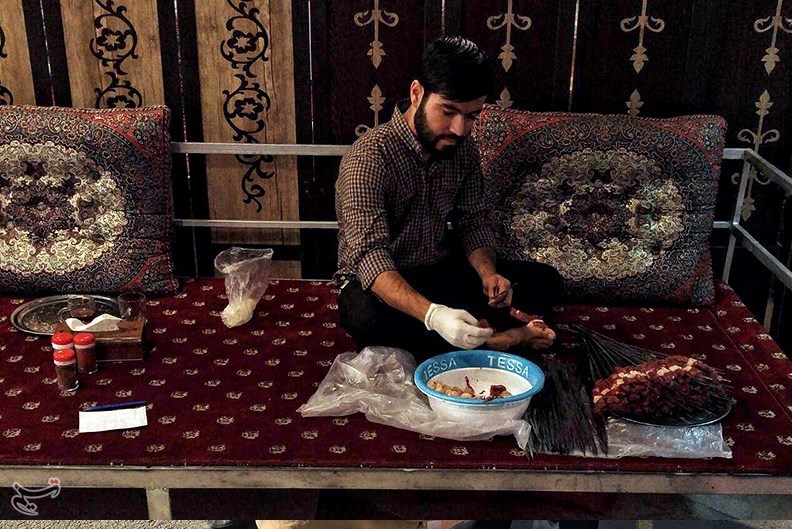 وارد یکی از رستوران ها می شوم، تختهایی به ردیف در سالنی روشن و تقریبا رو به آفتاب و آینههای دور تا دوری که به تو اجازه میدهد آنجا را از هر زاویه برانداز کنی، هنوز تا ظهر مانده و تقریبا خلوت است، «سید احمد» به شاگردانش میگوید برنجهای خیس شده را در دیگ بیندازند و خودش سینی گوشتهای تکه شده را آنسو میبرد تا به سیخ بکشد و از همان اول هم با من طی میکند که اگر مشتری آمد دیگر صحبت نمیکند و باید حواسش شش دانگ به کارش باشد.