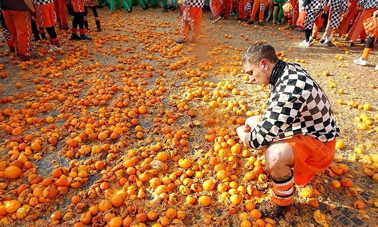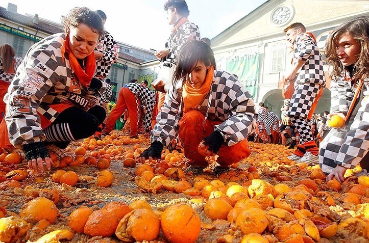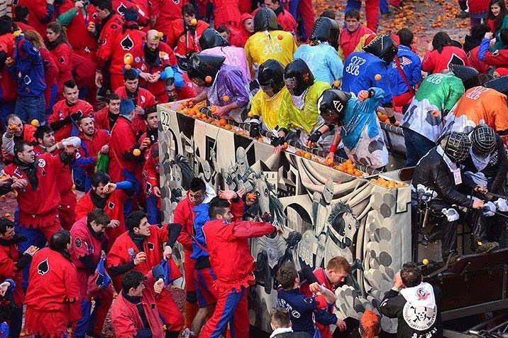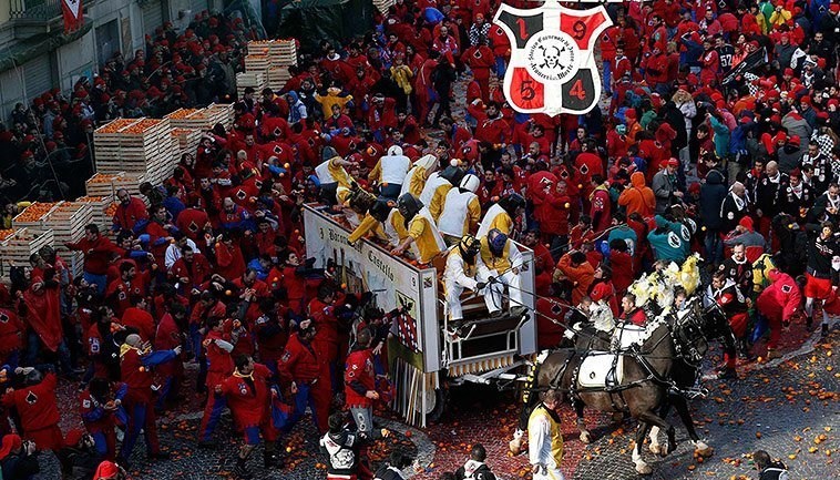 این مراسم امسال در کومونه «ایورا»(Ivrea) در استان «تورین» در شمال ایتالیا برگزار شد.