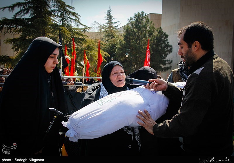 در این مراسم زرین تاج بهرامی مادر شهید «بهروز صبوری» با پیکر این شهید وداع و لحظاتی با شهید گمنام 18 ساله نجوا کرد.
