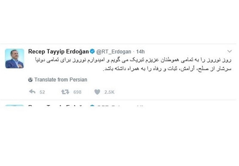 پیام تبریک اردوغان به زبان فارسی