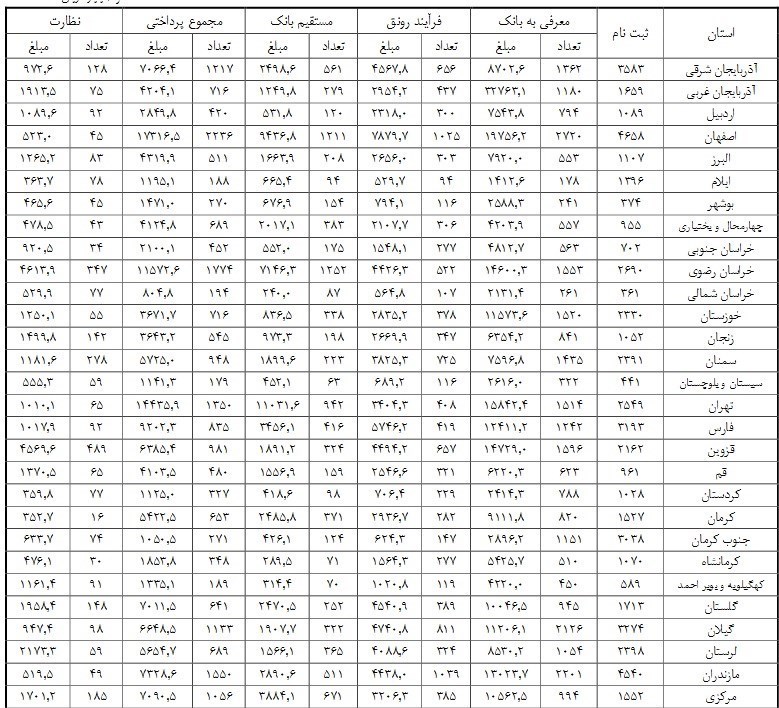 *جزئیات میزان تسهیلات دریافتی واحدهای تولیدی در قالب طرح رونق به تفکیک هر استان به شرح زیر است: