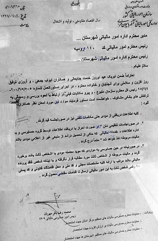 این ابلاغیه بعد از بخشنامه سال گذشته رئیس کل سازمان مالیاتی در خصوص نحوه بررسی و رسیدگی به تراکنشهای بانکی مشکوک صادر شده است. در بخشنامه مذکور مسئولیت اجرای این دستورالعمل بر عهده ادارات کل امور مالیاتی گذاشته شده بود.