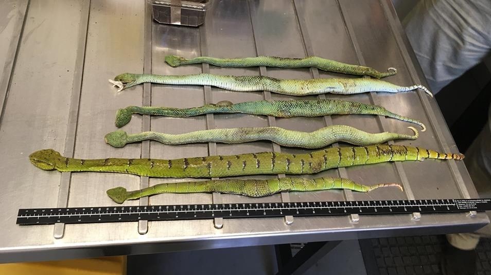 بر اساس گزارش تلگراف، ماموران گمرک استرالیا این محموله مرگبار را که شامل چند حلقه مار و دو عنکبوت بود در مرز این کشور کشف کردند.