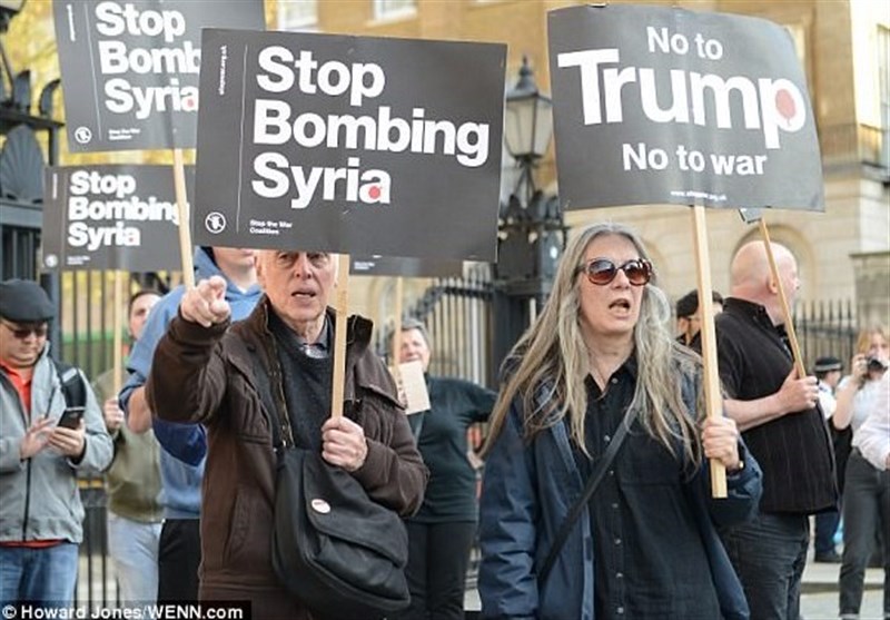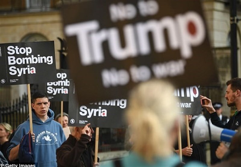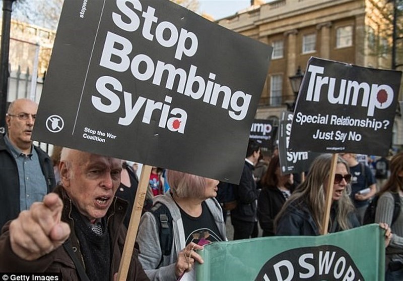 این نهاد که سالها مدیریت آن بر عهده جرمی کوربین، رهبر کنونی حزب کارگر بود با شعارهای "نه به حملات ترامپ به سوریه" و "نه به حمایت بریتانیا" مخالفت خود را با این حملات نشان دادند.