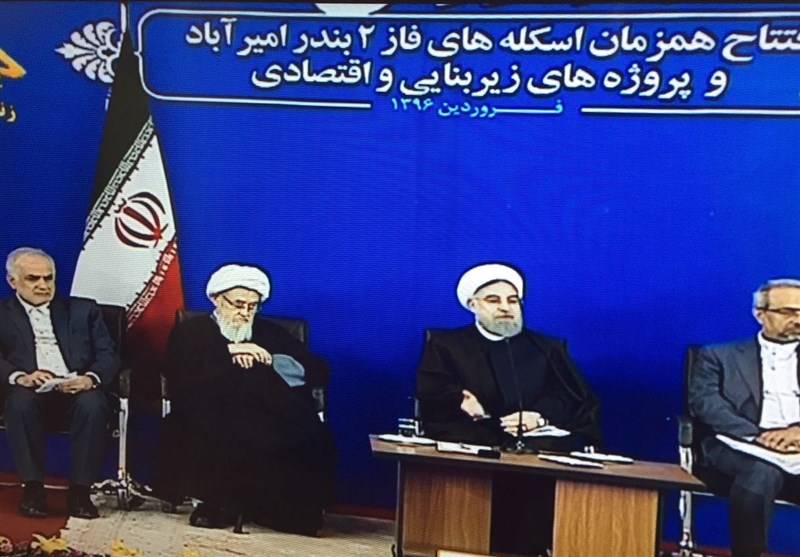 به گزارش خبرگزاری تسنیم از ساری، حجت‌الاسلام والمسلمین حسن روحانی دقایقی پیش در مراسم افتتاح همزمان اسکله‌های فاز دو بندر امیرآباد و پروژه‌های زیربنایی و اقتصادی مازندران با تشکر از وزیر راه و مدیرعامل سازمان بنادر اظهار داشت: کار بزرگ در زمینه حمل و نقل دریایی در چند سال گذشته انجام شده است.