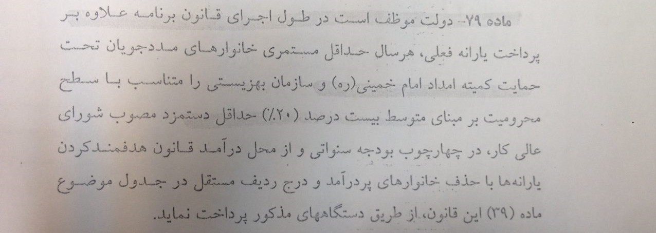 جالب این جا است که پیشنهاد افزایش مستمری مددجویان کمیته امداد و بهزیستی، در حالی از سوی مجلس شورای اسلامی و این دو نهاد مطرح و در نهایت توسط نمایندگان مردم تصویب شد که قانون گذار با علم به این مشکلات و موانع، دولت را مکلف کرده بود تا مبلغ افزایش مستمری مددجویان را از طریق این دو دستگاه در اختیار مددجویان قرار دهد.