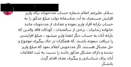 در پایان جای این سوال وجود دارد که علیرغم مشکلات معیشتی دهکهای پایین جامعه به خصوص مددجویان کمیته امداد امام خمینی (ره) و سازمان بهزیستی، چه کسی پاسخگوی تضییع حق مددجویان این دو نهاد است که در کوران تبلیغات نامشروع و غیرقانونی برخیها، از این چند هزار تومانی هم محروم ماندهاند؟