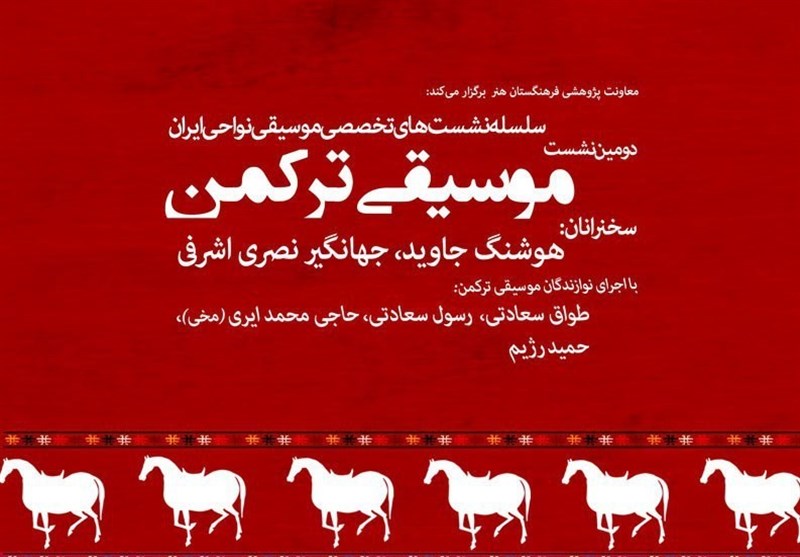 دومین نشست از سلسله نشستهای تخصصی موسیقی نواحی ایران با موضوع «موسیقی ترکمن»، در روز دوشنبه 4 اردیبهشتماه 96، در تالار ایران فرهنگستان هنر به نشانی خیابان ولیعصر(عج)، پایینتر از چهارراه طالقانی، شماره 1552 برگزار میشود.