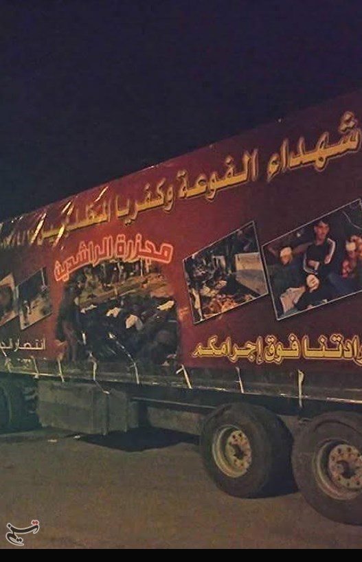 تروریستها در جریان خروج اولین گروه از اهالی کفریا و فوعه که تعدادشان پنج هزار نفر بود، آنها را چندین روز معطل نگه داشته و در یک جنایت هولناک، یک تروریست تکفیری خود را در میان این شهروندان مظلوم منفجر کرد که به شهید و زخمی شدن بیش از 300 نفر منجر شد.